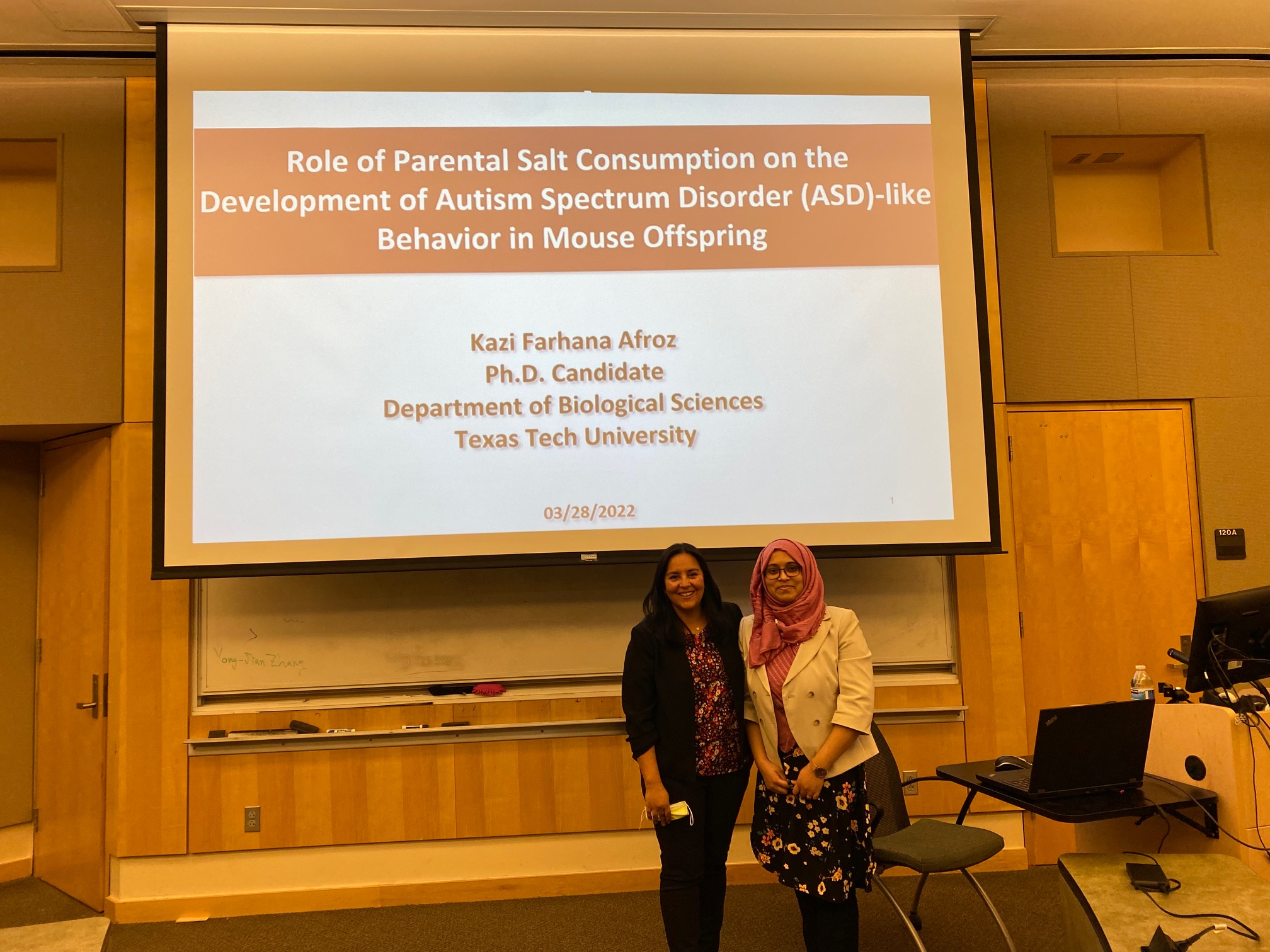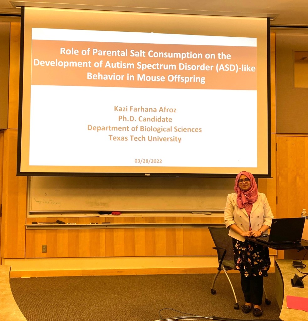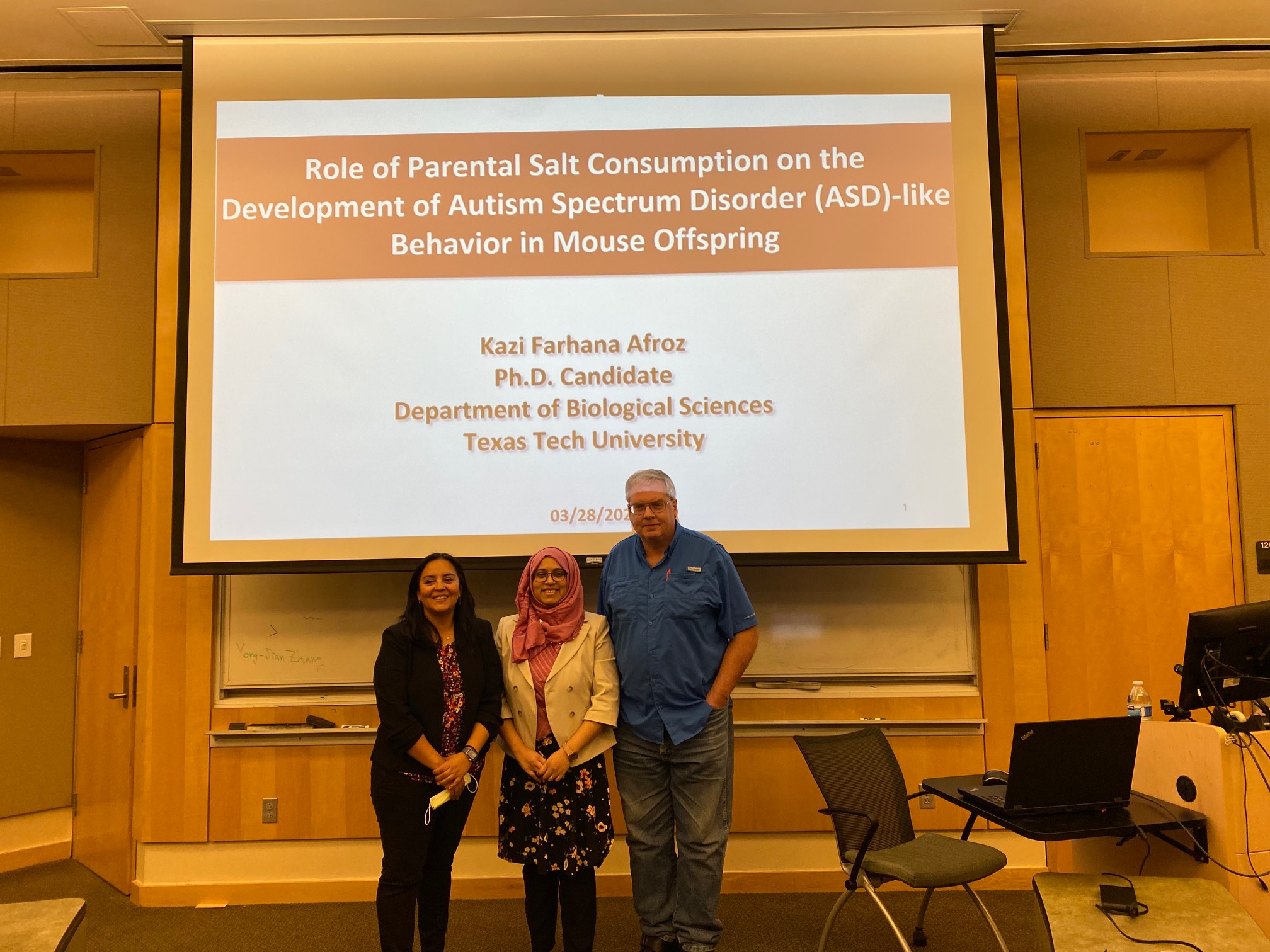 The second paper is Farhana’s first research manuscript with the help of a fantastic team of undergraduate researchers, The title is “Altered gut microbiome and autism like behavior are associated with parental high salt diet in male mice“, and will be coming out in Scientific Reports.